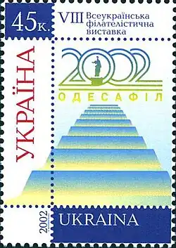 - ↑ Марка VIII Всеукраїнська філателістична виставка "Одесафіл’02". (укр.). КМД УДППЗ «Укрпошта». poshta.kiev.ua. Дата обращения: 4 марта 2018. Архивировано из оригинала 4 марта 2018 года.