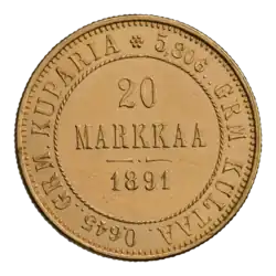 Золотые монеты Российской империи берут своё начало с монетной реформы Петра I, которому удалось создать русскую золотую ходячую монету.[1] Первой золотой монетой стал червонец без указания номинала, отчеканенный на Кадашевском монетном дворе в 1701 году. Создание ходячей золотой монеты было вызвано необходимостью выпуска монет большого номинала, в то время как попытки выпустить серебряные двухрублевики в конце правления Петра I не увенчались успехом.[1]