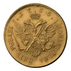 | Во время царствования Иоанна Антоновича золотые монеты не чеканились[24] |