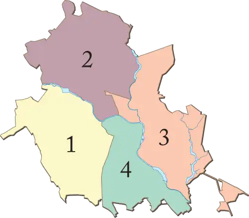 Город состоит из четырёх административных районов: Ленинского, Фрунзенского, Октябрьского, Советского.