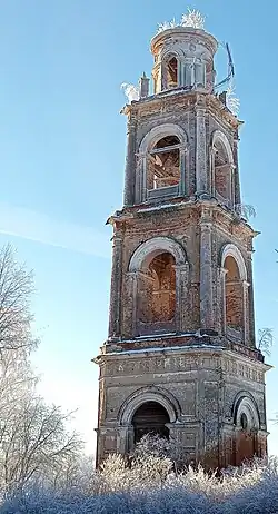 Во второй половине столетия при Воздвиженской церкви была выстроена новая четырёхъярусная колокольня. Краевед Н. С. Борисов даёт такое её описание: «Впечатляет сохранившаяся до наших дней, отдельно стоящая массивная четырёхъярусная колокольня выстроенная во второй половине XIX века и стилизованная в формах русского классицизма».