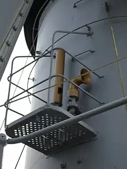 Электросирена системы оповещения защищена козырьком от осадков, центробежный излучатель защищён сеткой от гнездования птиц