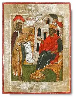 Предание гласит, что истинные ревнители благочестия были изгнаны из страны, и при дворе был учреждён штат жрецов Ваала. Грозным обличителем за попрание святыни явился пророк Илия, который совершал много чудес, чтобы вразумить нечестивого царя. История его жизни и деятельности излагается в Третьей и Четвёртой Книгах Царств (3Цар. 17—21 и 4Цар. 1, 2).