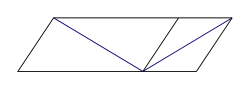 Диагональная линия, делящая пополам больший левый параллелограмм, кажется, значительно длиннее, чем диагональная линия, делящая пополам меньший правый параллелограмм, но она такой же длины.