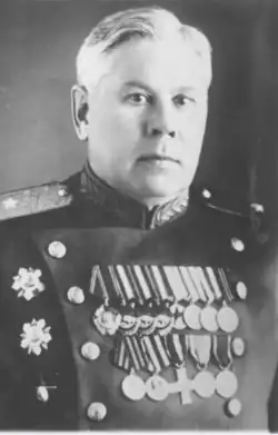 - ↑ Указ Президиума Верховного Совета СССР «О награждении орденами генералов, офицерского, сержантского и рядового состава Красной Армии» от 15 января 1944 года // Ведомости Верховного Совета Союза Советских Социалистических Республик : газета. — 1944. — 23 января (№ 4 (264)). — С. 2. Архивировано 24 сентября 2021 года.