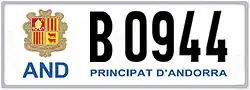 С 1929 года в Андорре действует система регистрации автомобилей. Нынешний формат автомобильных номеров Андорры датируется 2011 годом. Таблички текущей серии имеют белый фон с чёрными номерами. Они состоят из пяти символов, обычно из одной буквы и четырех цифр, но допускаются именные таблички. Различные серии существуют для многих категорий транспортных средств, например, для автомобилей дипломатического корпуса и коллекционных автомобилей. Слева от цифр располагается герб княжества и буквы «AND» под ним. Под номером находится надпись «Principat d’Andorra» (княжество Андорра).