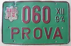 - ↑ Decret del 27-07-2011 pel qual s’aprova la modificació dels articles 12 i 17, i d’addició de l’article 19 del Reglament regulador de la fabricació i la instal·lació de les plaques de matrícula en vehicles i ginys mecànics. Bulletin officiel de la Principauté d'Andorre. Дата обращения: 7 января 2022. Архивировано 7 января 2022 года.