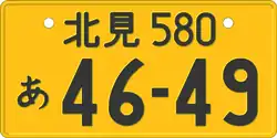 Таким образом, автомобильный номер в Японии имеет следующий формат: «KK?*H##-##» (например, «足立500き21-41»), где «KK» — это название офиса, выдавшего документ, написанное кандзи, «H» — это хирагана, «?» — это «5» для транспортных средств объемом менее 2000 см³ и «3» для транспортных средств объемом более 2000 см³ (другие номера менее распространены: «1» — для больших грузовых автомобилей, «2» — для автобусов и т. д.[1]), «*» — это число от 0 до 99 (на номерных знаках до 1971 года отсутствует), а «#» — это число от 0* до 9 (*вместо ведущих нулей ставятся интерпункты).