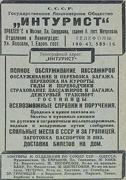 - Государственное акционерное общество по иностранному туризму в СССР (ГАО «Интурист») Наркомата внешней и внутренней торговли СССР (1929—1933)