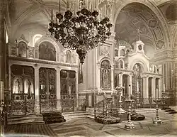 Своды собора расписали в 1871-м, а через год после этого практически закончили внутреннюю отделку больничной церкви: иконостас и клиросы сделали из букового дерева с позолотой, а паникадило и подсвечники — из бронзы[1][18][19].
