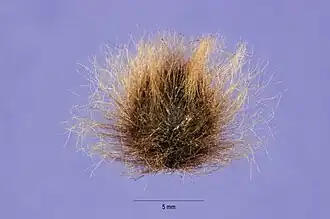 Плоды 1,3–2 см в длину и ширину, конические, яйцевидные, полушаровидные, гладкие, при высыхании коричневеют. Семена 1–4 шт., 10–12 мм, эллипсовидные, коричневые или серые, опушённые тёмно-серыми или коричневыми трихомами[6].