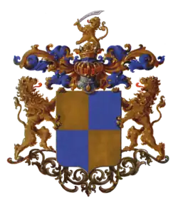 Щит четверочастный, золотом и лазурью.