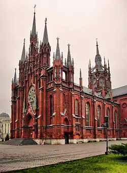 Неоготический стиль стал одним из доминирующих в XIX веке в стиле католических костёлов в России. Первым католическим храмом в неоготическом стиле был, предположительно, церковь святого Георгия в Самаре (1854—1863). Наиболее выразительными неоготическими католическими храмами, построенными в европейской части России, были Собор Непорочного Зачатия Пресвятой Девы Марии в Москве (1899—1911) и Николаевский костёл в Киеве (1899—1909), а в части азиатской Католической церкви Пресвятой Богородицы (1909—1921). На рубеже XIX и XX веков многих российских архитекторов, создающих в неоготическом стиле были поляками по национальности, в том числе Фома Богданович-Дворжецкий, Владислав Городецкий, Иосиф Плошко.