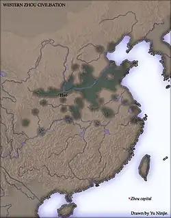 Период Чжоу (XI—III вв. до н. э.) делится на так называемые Западное и Восточное Чжоу, что связано с переездом правителя Чжоу в 770 году до н. э. под угрозой нашествия варварских племён из Цзунчжоу — первоначальной столицы государства — в Чэнчжоу. Земли в районе старой столицы были отданы одному из союзников правителя государства, который создал здесь новый удел Цинь. Впоследствии именно этот удел станет центром единой китайской империи.