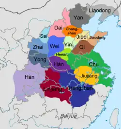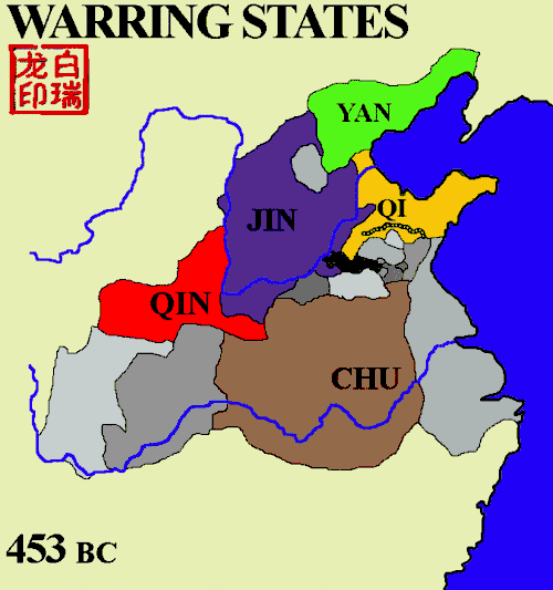 В период Чжаньго на территории Китая сосуществовало семь крупнейших царств — Вэй, Чжао и Хань (ранее все три входили в царство Цзинь), Цинь, Ци, Янь и Чу. Постепенно в результате ожесточённого соперничества верх стало одерживать самое западное — Цинь. Присоединив одно за другим соседние царства, в 221 до н. э. правитель Цинь — будущий император Цинь Ши Хуан Ди — объединил весь Китай под своей властью.