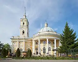 В Екатерининский период своё развитие начало классическое направление церковной архитектуры, постепенно пришедшей на замену церковному елизаветинскому барокко. При императрице было продолжено развитие церковного зодчества времён Петра I. Екатерина при возведении новых храмов, требовала обращаться к античной традиции, это упрощалось тем, что античность изначально влияла на русское церковное зодчество, принесённое из Византии — наследницы античной Греции. Построенные в конце XVIII века храмы, как в Европе — стремились подражать церковной архитектуре древнего Рима, но перенимали черты архитектуры Византии, в частности при построении церквей могло применяться трехчастное построение храма[163].
