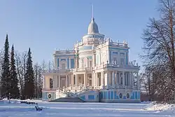 При Екатерине город начало строить множество известных архитекторов, например Джакомо Кваренги, спроектировавший Эрмитажный театр, здания Иностранной коллегии, Английскую набережную, Ассигнационный банк и другие здания[158] другой известный архитектор Иван Егорович Старов, спроектировавший Троицкий собор, Таврический дворец, он построил также множество усадеб за городом[158]. В Петербурге на месте почтового двора Петра I про проекту Ринальди был построен Мраморный дворец — первое здание в Петербурге, чей фасад был украшен разными породами гранита и мрамора[151][93][159]. Таврический дворец по проекту Старова стал образцовым для дворянских усадеб[151]. Другой образцовый дворец — Дом Державина, про проекту Львова[160] или Юсуповский дворец[4].