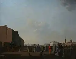 Несмотря на то, что при Екатерине были достигнуты успехи по преданию Петербургу городского облика, город выглядел по-прежнему незавершённым[61] и выделялся своими контрастами, где рядом с особняками и садами стояли деревянные хижины и пустыри, предназначенные для огорода. Рядом с благоустроенным улицами, застроенными каменными домами можно было встретить болота, украшавшие близлежащие дома хором квакающих лягушек[10].