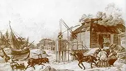 Окраины города были застроены деревянными избами и лачугами, в которых жила городская беднота[135]. В них часто селились приезжие ради заработков крестьяне, образуя плотные коммуны — артели. В таких помещениях почти отсутствовали бытовые условия для жизни, и эти люди часто страдали от болезней[136].