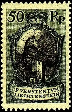 ![]() Первая почтовая марка австрийской почты для Лихтенштейна, 1912 (Mi #1x) | |
