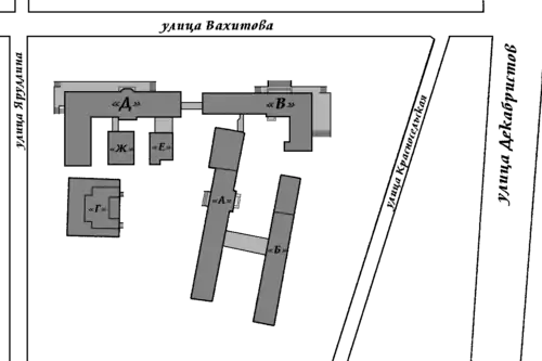 Построен в конце 1970 года. Корпус имеет 4 этажа. В нём кроме учебных и лабораторных аудиторий расположены актовый зал, библиотека и столовая. Переходами соединён с корпусами «Б» (1-й этаж) и «В» (2-й этаж).