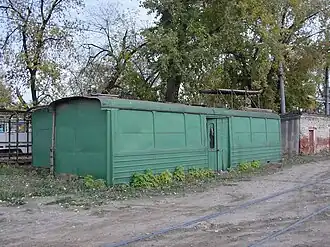 - Вагоны РВЗ-6М2 — до 1987 вагонный парк состоял из них на 100%. Сейчас сохранились так называемый «парадный вагон» (на линии в дни праздников), вагон-вышка контактной сети, вагон-трактир, переоборудованный по состоянию на 2023 год в экскурсионный трамвай, и поливочный вагон.[8][9]