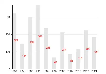 | 1862[30] | 2002[31] | 2007[32] | 2010[33] | 2017[1] |