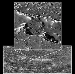 - ^ В случае ледяных спутников палимпсесты — круглые яркие геоструктуры, вероятно, остатки древних ударных кратеров; см. Greeley, 2000[13].