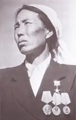 Этим же указом званием Героя Социалистического Труда были награждены председатель колхоза «Кум-жота» Свердловского района Ян Чун Сик, звеньевые Кунемай Джайлауова и Чохан Кокеева.