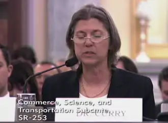 2013 года Карри свидетельствовала перед подкомитетом по окружающей среды Палаты представителей[16], остановившись на многих значимых неопределенностях в прогнозировании будущего климата[17].