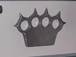 - Тычковый нож, пуш-даггер — нож Т-образной формы, который можно использовать и как кастет