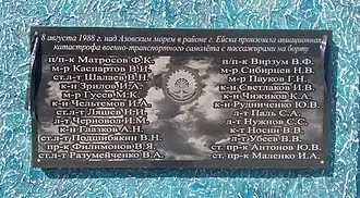 - ↑ Катастрофа Ан-12 над Азовским морем близ Ейска, 08 августа 1988 года. AirDisaster.ru. Дата обращения: 22 февраля 2015. Архивировано 22 февраля 2015 года.