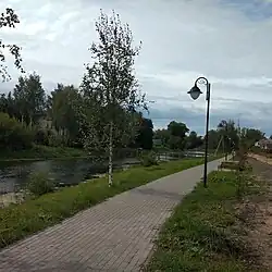 Набережная реки Кашинка с деревянными пешеходными мостами.