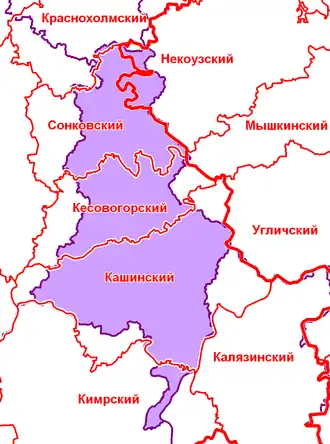 В 1927 году Кашинский уезд был упразднен, его территория передана Кимрскому и Бежецкому уездам, в 1929 из Кашинской и Славковской волостей Бежецкого уезда образован Кашинский район, вошедший в состав Кимрского округа Московской области[3].