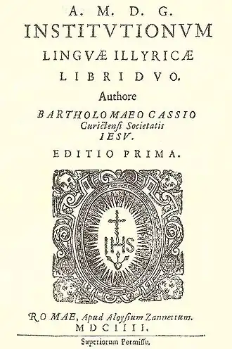 Первая в истории грамматика хорватского языка была издана Кашичем в Риме в 1604 году в Риме под названием Institutionum linguae illyricae libri duo («Структура иллирийского языка в двух книгах»). Книга активно использовалась в качестве учебника хорватского языка иезуитами, отправлявшимися с миссией на Балканы.