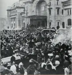 Депутаты IV Государственной думы Владимир Иванович Дзюбинский и Александр Фёдорович Керенский возле Таврического дворца, 1916 г.