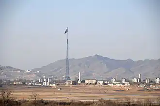 В полностью закрытой Северной Корее это единственный населённый пункт, который можно наблюдать с территории Южной Кореи.