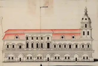 Первое деревянное здание бурсы появилось ещё во времена митрополита Петра Могилы. Там жили воспитанники-бедняки с 1719 года до пожара 1766 года. В 1763-1765 году на берегу Днепра построили новое деревянное здание бурсы на каменном фундаменте. Когда и его уничтожил пожар 1775 года, то на старом фундаменте начали возводить каменный «сиротопитательный бурсацкий дом», а в 1810-1811 годах к нему пристроили 2-й этаж[14].