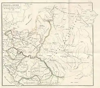 Около VII—X веков происходил многократный приток в уже освоенные славянами различные местности Восточно-Европейской равнины многочисленных групп славянских переселенцев из Подунавья, по мнению археолога В. В. Седова, сыгравший существенную роль в консолидации славянского населения Восточной Европы и завершившийся формированием древнерусской народности[76]. По характеру и деталям погребальной обрядности древнейшие труположения на Среднем Поднепровье имеют прямые аналогии в раннехристианских памятниках на территории Великой Моравии[77][78]. Н. К. Никольский, вслед за Д. И. Иловайским и А. А. Шахматовым, предполагал наличие в летописи двух взаимоисключающих версий происхождения руси — поляно-славянской и варяжской. По его мнению, исходной была поляно-славянская версия, а первый автор летописи был убеждён, что «Русская земля», как и все славяне, «пошла» из Подунавья. Позднейший же автор пытался доказать, что русь это варяги, пришедшие «из-за моря, и не в Киев, а в северо-западные земли»[79]. Вслед за И. П. Филевичем Никольский назвал первоначальный летописный свод «Повести о Русской земле» или «Повести о поляно-руси»[80][81].