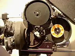 Основой любого киносъёмочного аппарата является лентопротяжный механизм, который служит для подачи неэкспонированной киноплёнки к фильмовому каналу, удержания её в строго определённой плоскости относительно съёмочного объектива, прерывистого перемещения на шаг кадра и намотки экспонированной киноплёнки в приёмный рулон. Лентопротяжный механизм содержит кассеты, зубчатые барабаны, ролики, фильмовый канал и грейферный механизм[67].