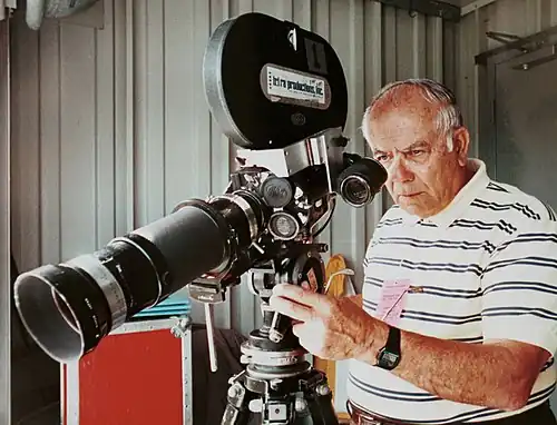 Киносъёмочный аппара́т, киносъёмочная ка́мера, кинока́мера — съёмочная камера, предназначенная для записи движущегося изображения на киноплёнку. Процесс записи называется киносъёмкой, а полученное в результате изображение используется для создания кинофильма[1]. В процессе киносъёмки при помощи объектива на светочувствительной киноплёнке последовательно фиксируются фотографические изображения отдельных фаз движения объектов съёмки с частотой, превышающей порог человеческого восприятия[2][3]. В результате при воспроизведении полученного фильма зрители воспринимают последовательность неподвижных изображений как одно непрерывно движущееся. Стандартная частота киносъёмки звукового кинематографа во всём мире составляет 24 кадра в секунду[4][5].