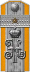 Погон зауряд-прапорщика (произведённого в это звание после русско-японской войны) на должности вахмистра (в мирное время) эскадрона Его Величества. 1907—1912.