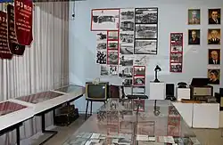 Благодаря работникам Строительного треста № 46 в музее появились необходимые витрины, подиумы, которые заполнили фотографии и другие экспонаты. Первую постоянную экспозицию оформили сотрудники научно-исследовательских экспериментальных мастерских при ЛВПХУ им. В. И. Мухиной: ленинградский художник-график Борис Ракитский и архитектор Виктор Гринько.