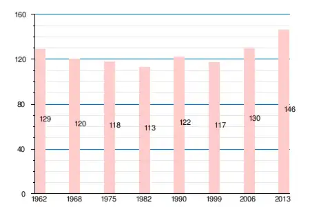 | 1962 | 1968 | 1975 | 1982 | 1990 | 1999 | 2006 | 2008 | 2011 | 2012 | 2013 |