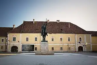 28 ноября 1968 года перед главным фасадом княжеского дворца был установлен 9-метровый конный памятник князю Михаю Храброму скульптора Оскара Гана. В 1975 году, в год 375-летия первого объединения Румынии, на фасаде дворца позади памятника скульптором Хорией Флэмэнду был выполнен барельеф длиной 6,2 метров и высотой 3 метра. На нём изображён Михай Храбрый, принимающий дань от трёх Дунайских княжеств.