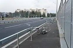 Повреждения отбойников нового путепровода в результате аварий