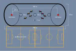 - В игру вступают по 4 игрока из каждой команды; во время игры команда вправе менять игроков по ходу игры (то есть не останавливая игру);
