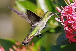 Многие растения Нового Света опыляются исключительно колибри. Они смещают время цветения, обеспечивая птиц нектаром в любое время года. При этом обе стороны представлены множеством видов, и, по всей видимости, парной коэволюции отдельных видов колибри и отдельных видов растений не происходило[32]. Только в Бразилии колибри опыляют представителей 58 семейств растений[33]. В Северной Америке около 150 видов растений эволюционировали чтобы опыляться колибри[34].