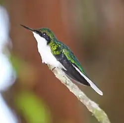 - белохвостые колибри[4] (Urochroa), венценосные колибри (Boissonneaua) и колибри — солнечные лучи (Aglaeactis);