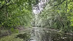 | центральная аллея: лесной участок с клёном ясенелистным и аморфой кустарниковой | безымянный пруд | безымянный пруд | лесная тропа |